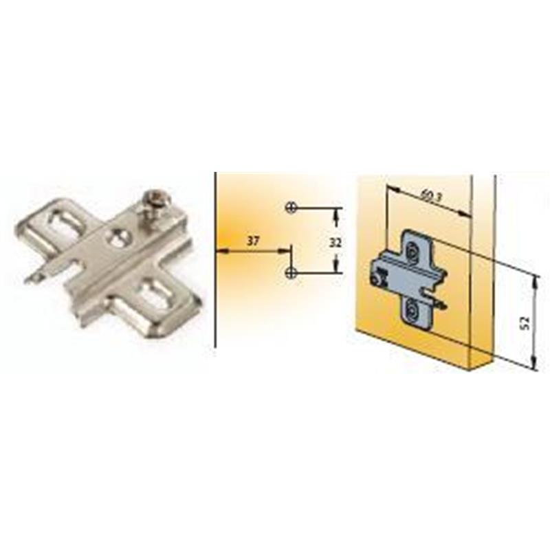 Montažna ploščica za odmično spono Lama basic. Ploščica se uporablja za spone, ki imajo drsni sistem namestitve. Podloga je primerna za krive odmične spone basic. Priporočena dimenzija vijakov za pritrjevanje je spax 3.5x17.